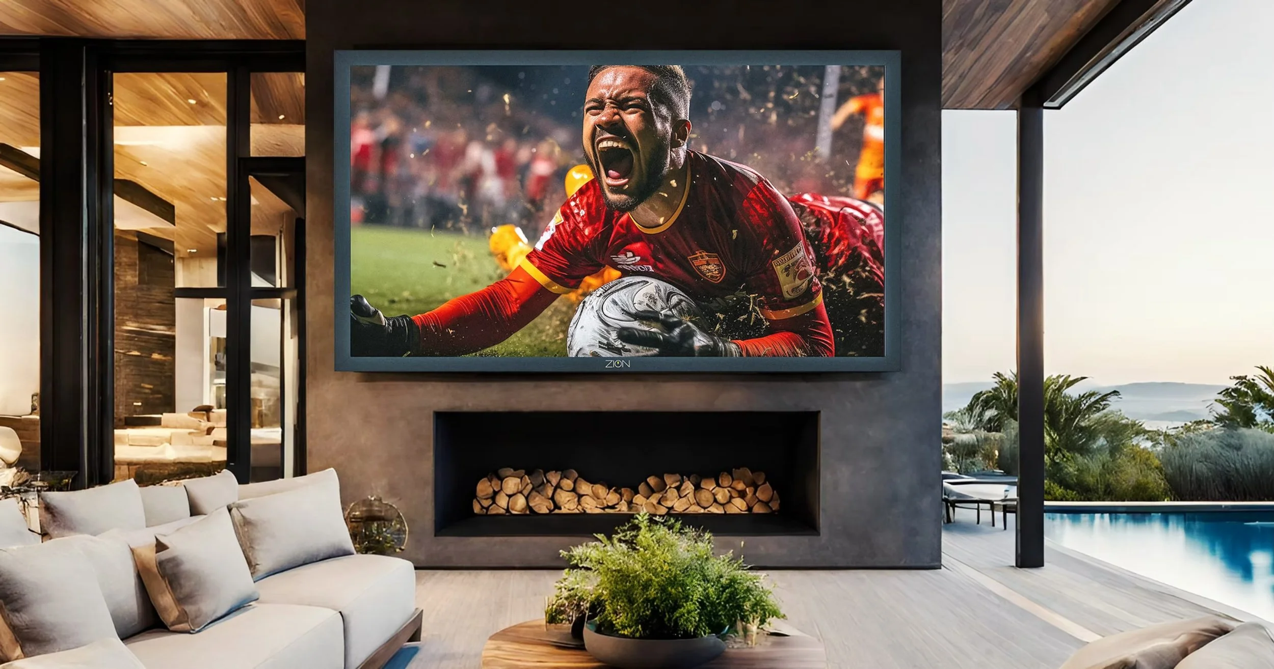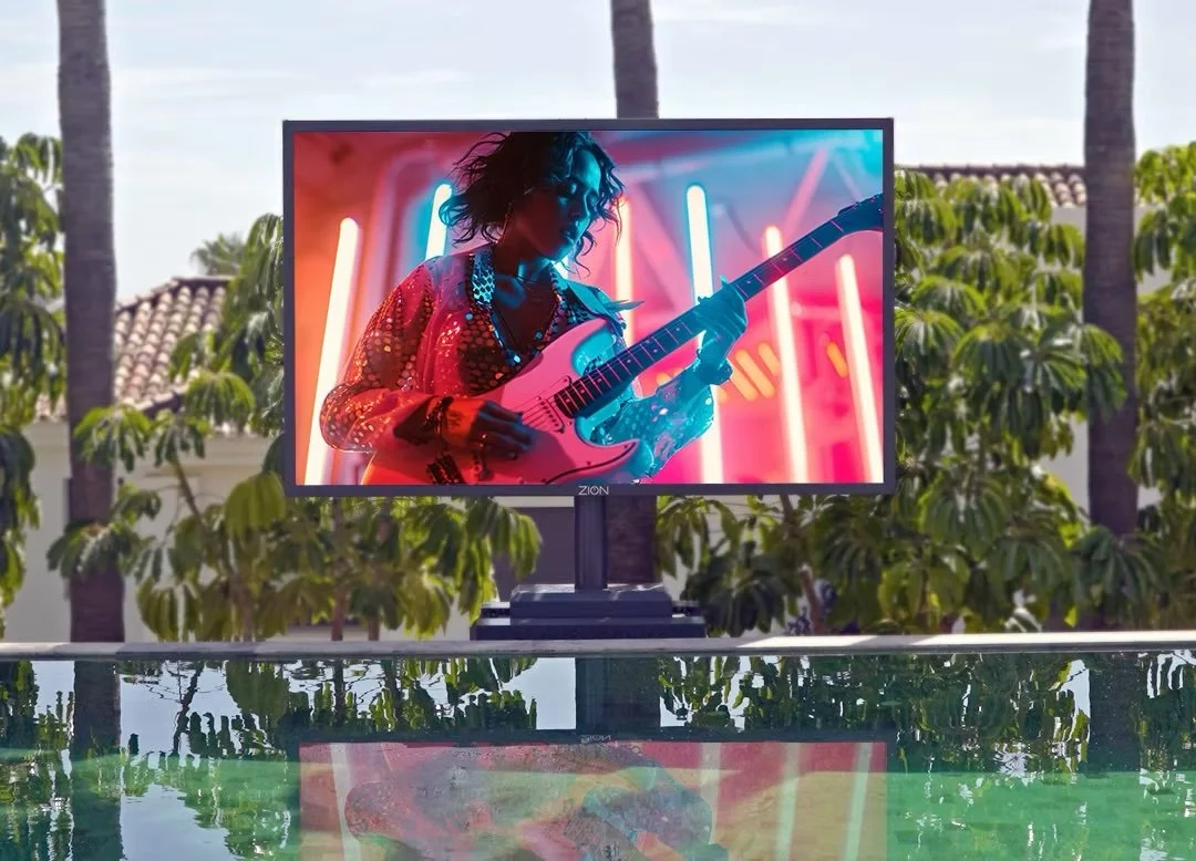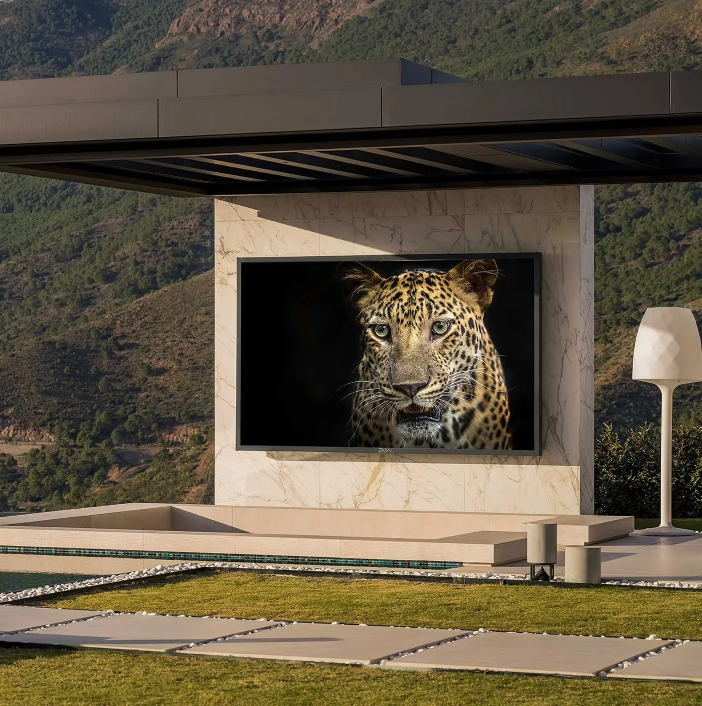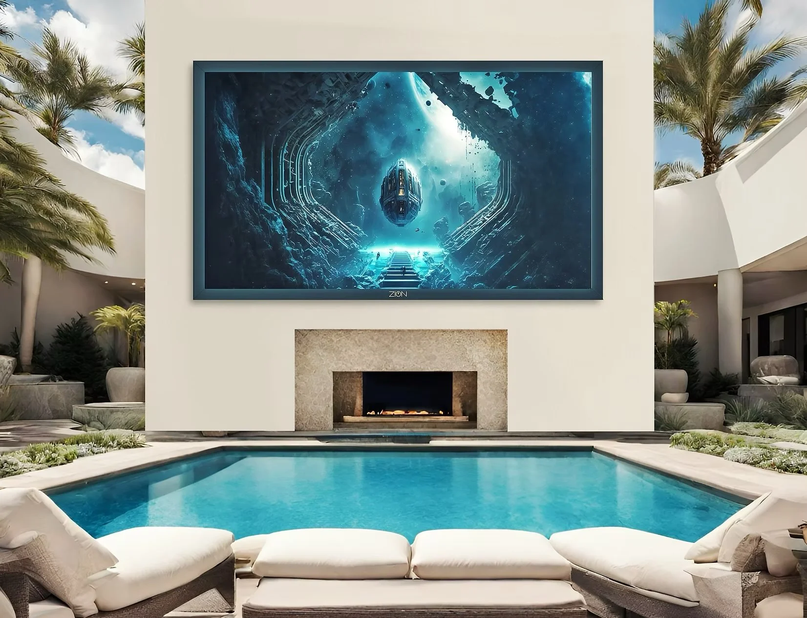 ZION Technology designs and manufactures high-end, large-format televisions in Spain, conceived as bespoke projects to transform residences and outdoor spaces into truly immersive cinematic experiences. In general terms, ZION's indoor solutions are developed in formats ranging from 135 to 205 inches, while ZION's outdoor solutions are available in sizes from 115 to 203 inches, always tailored to the space and its architectural integration.